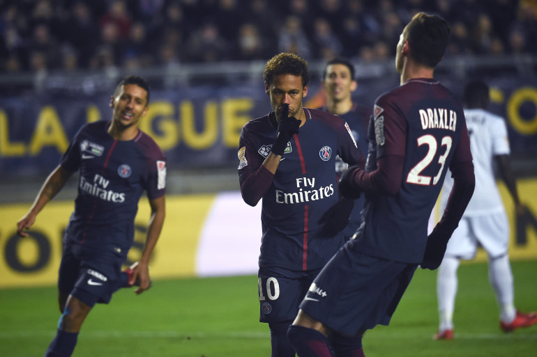 Neymar (au centre, doigt sur la bouche), a marqué le 1er des deux buts parisiens sur penalty