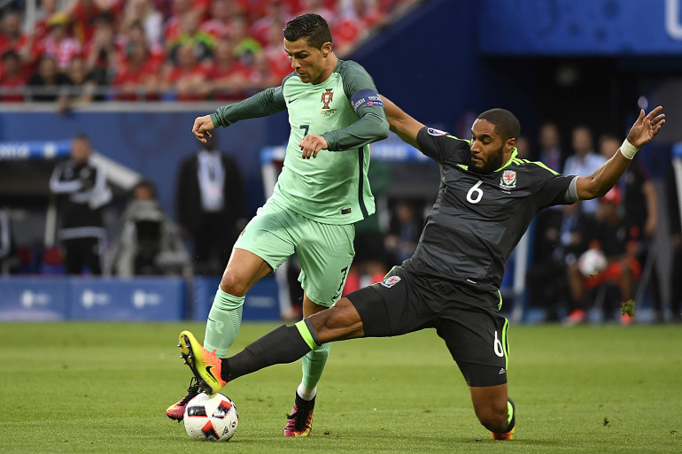 Cristiano Ronaldo à la lutte avec Ashley Williams mercredi 6 juillet 2016