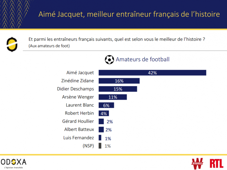 Aimé Jacquet, avec 42% des voix, reste l'entraîneur français le plus populaire.