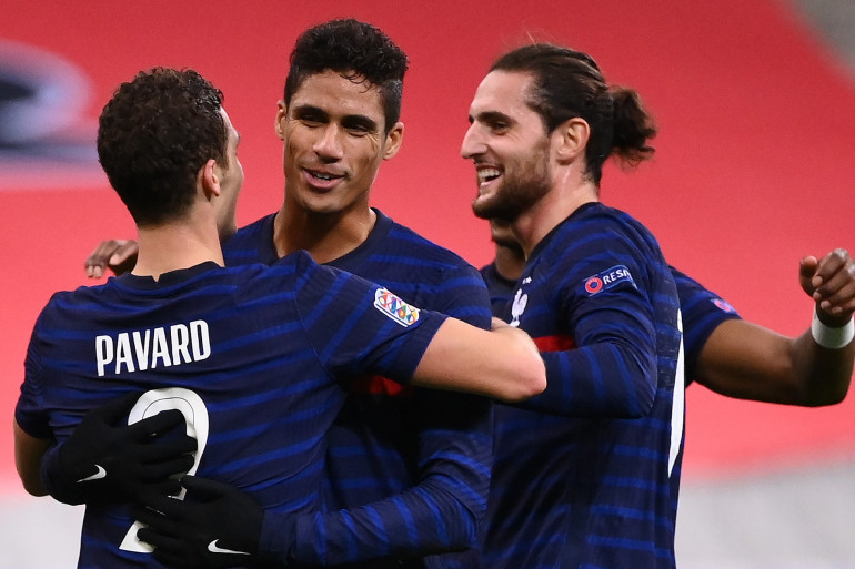 Benjamin Pavard, Raphaël Varane et Adrien Rabiot au Stade de France le 17 novembre 2020