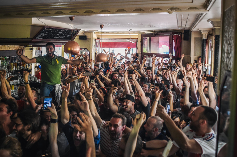 Les supporters des Bleus dans le Carillon à Paris lors de la victoire des Bleus le 15 juillet