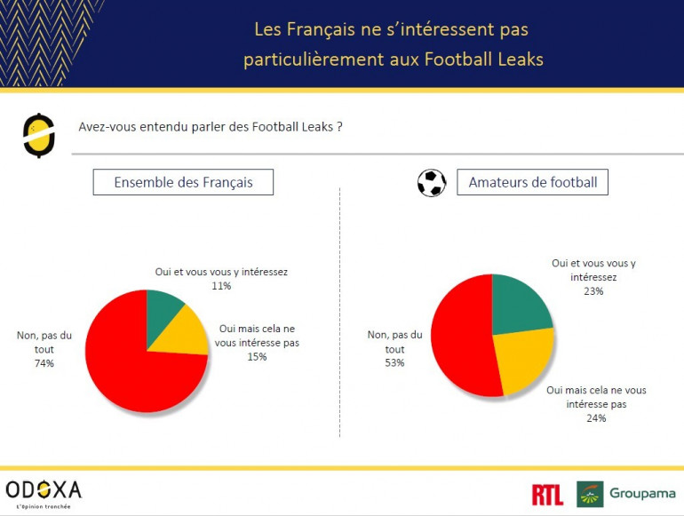 Seulement 11% des Françaises et des Français s’intéressent aux Football Leaks, 74% n’en ont même pas du tout entendu parler. Pour 78% des sondés et 85% des amateurs de foot, l’UEFA a tendance à avantager les gros clubs. L'opposition à l’idée d’une ligue fermée entre "grands" clubs européens recueille une majorité de suffrages.