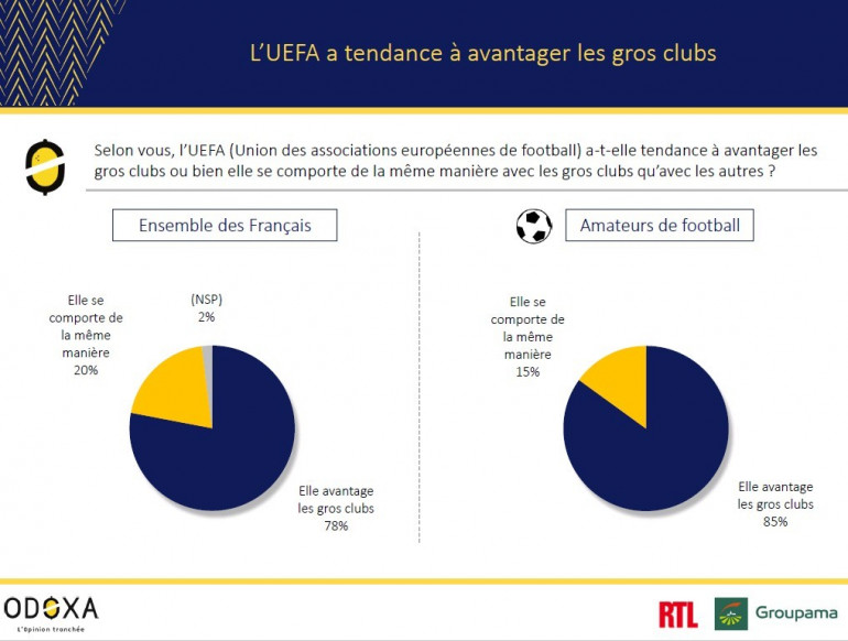 Pour une très large partie des sondés (78%) et plus encore pour les amateurs de football (85%), l’UEFA ne se comporte en effet pas de la même manière avec les gros clubs