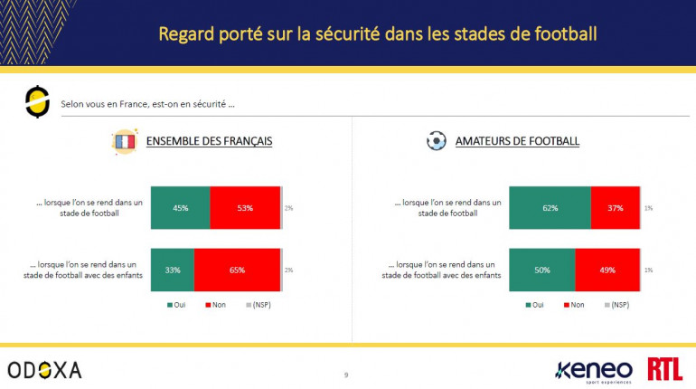 C’est d’autant plus problématique que les spectateurs de football de demain risquent de ne pas avoir l’occasion de devenir des aficionados. 65% des Français jugent en effet que l’on n’est pas en sécurité lorsque l’on se rend dans un stade de football avec des enfants.