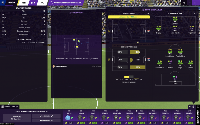 Pour le reste, Sports Interactive s'est surtout attaché à renforcer l'immersion dans les matchs avec une nouvelle interface donnant accès à davantage d'informations comme la composition d'équipe en bas de l'écran, la simulation de la rencontre en 3D ou les statistiques en temps réel au centre. L'entraîneur a également la possibilité de donner des consignes individuelles en un seul clic à ses joueurs, pour les encourager ou leur demander plus de concentration, par exemple.