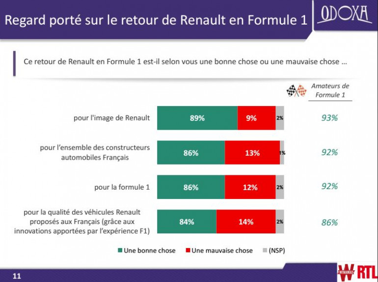 2016 consacre le grand retour de Renault en tant qu’écurie de Formule 1. Le moins que l’on puisse dire c'est que ce come-back ne laisse pas indifférent, puisque c'est un plébiscite. 89% des Français interrogés considèrent que ce retour de Renault en qualité d'écurie est une bonne chose pour l'image de la marque.