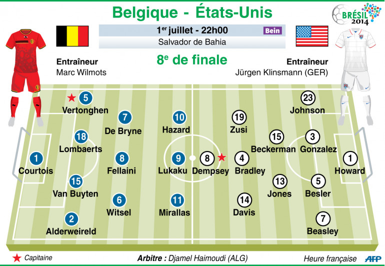 Infographie : les compositions probables du match Belgique - États - Unis, 8e de finale de la Coupe du monde 2014 au Brésil