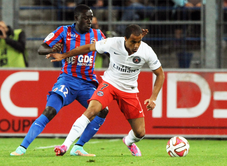 Le Brésilien Lucas sous les couleurs du PSG face à Caen en septembre 2014