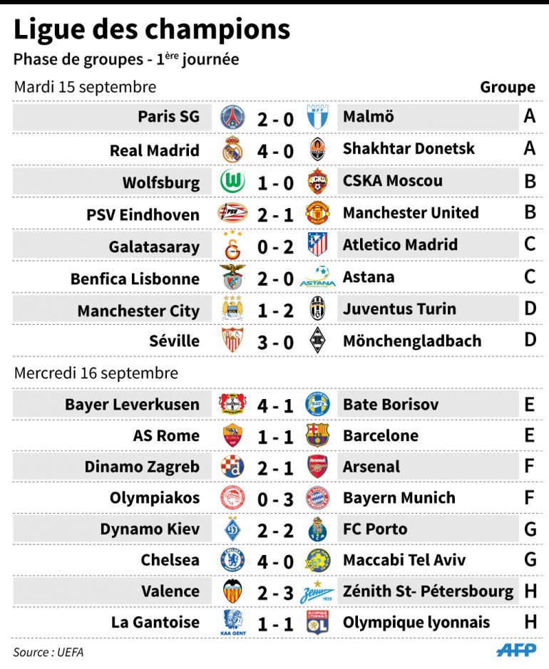 Dans l'autre match de la soirée dans le groupe H, Valence, tombeur de Monaco en barrages, s'est incliné à domicile face au Zénith Saint-Pétersbourg au terme d'une rencontre prolifique (2-3).