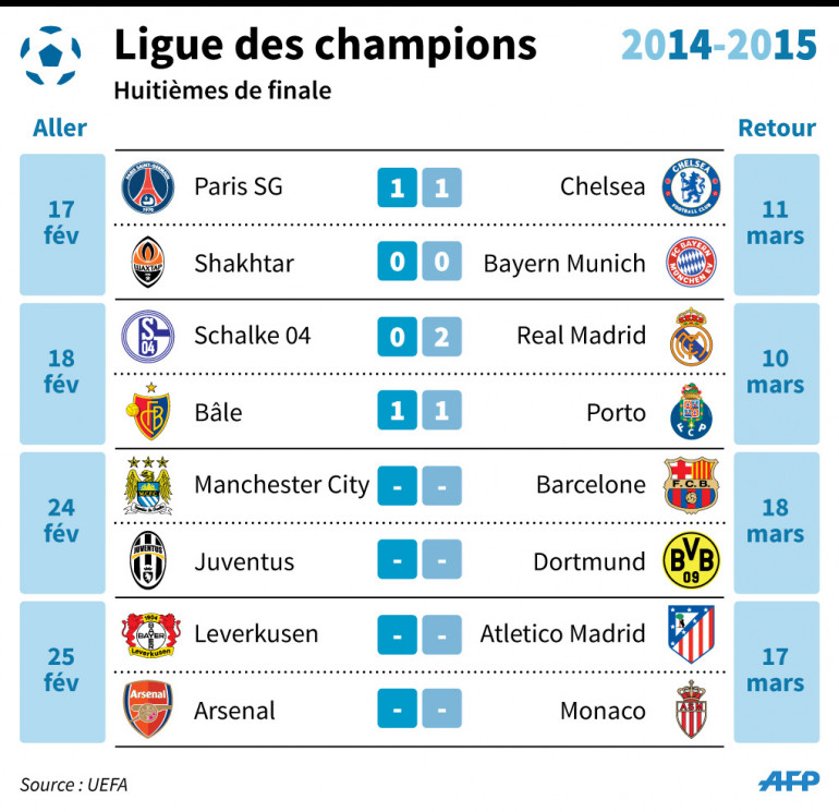 Ligue des champions 2014-2015 : le tableau des 8es de finale