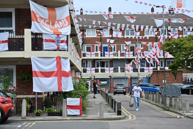 d'attendre. Le drapeau des Three Lions est accroché à toutes les fenêtres. La