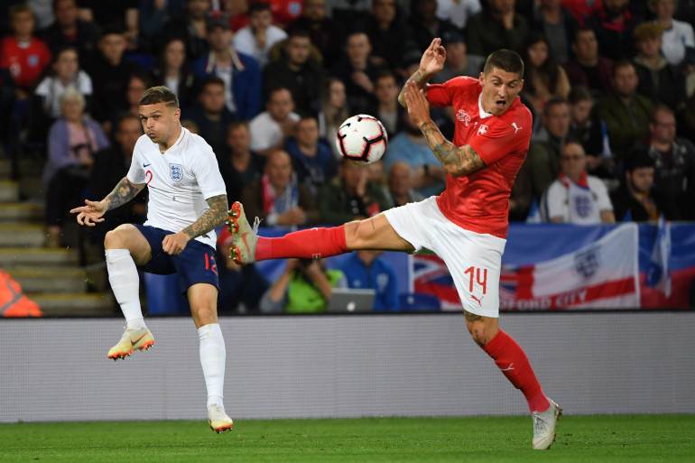 L'Anglais Kieran Trippier face au Suisse Steven Zuber le 11 septembre 2018 à Leicester