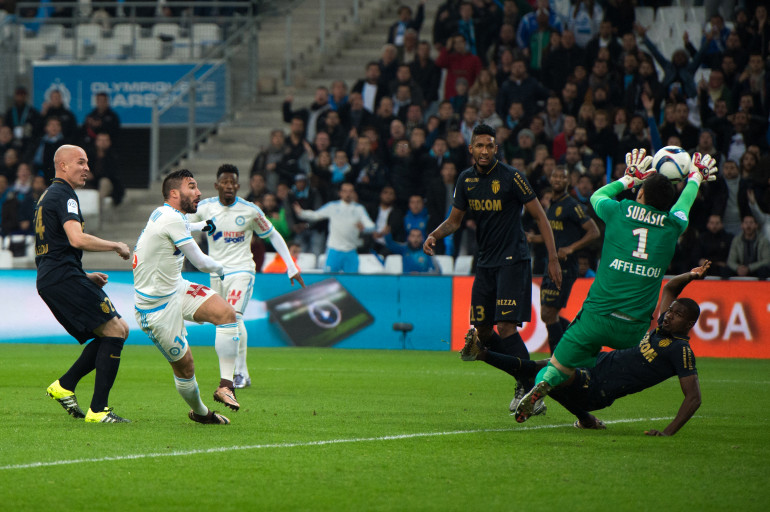Le gardien de Monaco effleure le ballon sur l'ouverture du score de Marseille le 29 novembre 2015