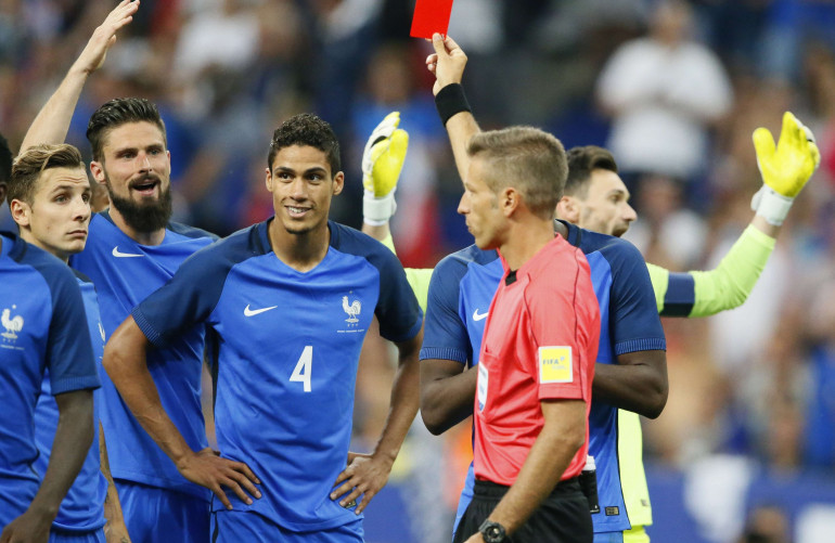 Raphaël Varane a été exclu du match après le recours à l'arbitrage vidéo