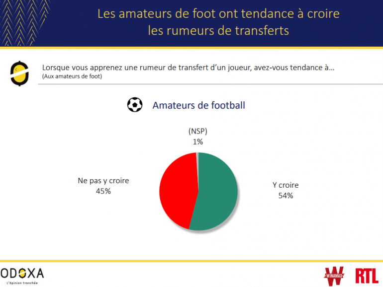 Plus de la moitié des amateurs de football ont tendance à croire les rumeurs de mercato.