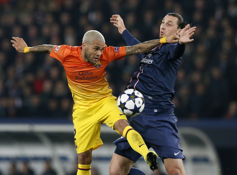 Dani Alves face à Zlatan Ibrahimovic le 2 avril 2013