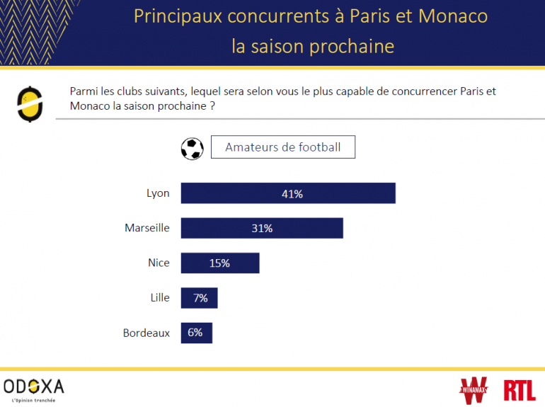 Lyon et Marseille prêt à concurrencer le PSG et Monaco la saison prochaine selon 41 et 31% des sondés.