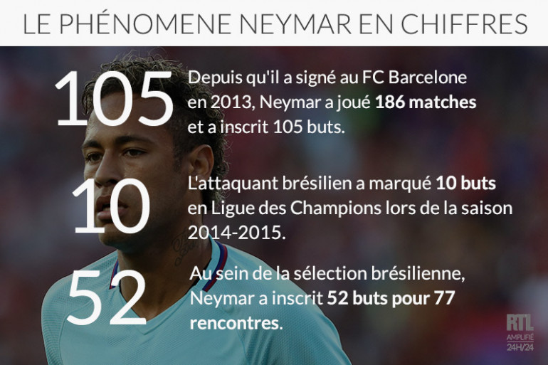 Au cours de ses cinq années au FC Barcelone, Neymar aura disputé 186 matches et aura marqué 105 buts. Sur la seule saison 2014-2015, il avait décroché la palme de meilleur buteur avec 10 buts marqués en Ligue des champions.