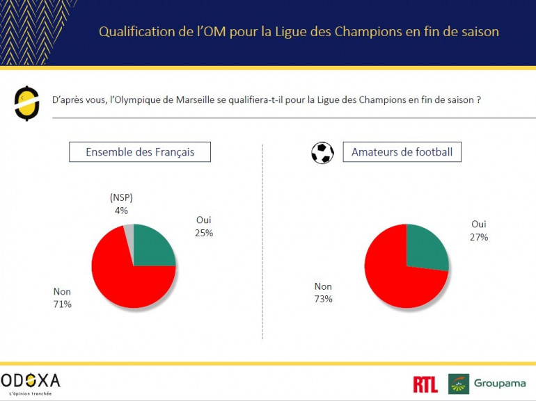 Mais la crise que traverse le club est telle que pour les Français, les coéquipiers de Florian Thauvin ne parviendront pas à se classer parmi les trois premiers en fin de saison. 71% des Français et 73% des amateurs de football estiment que l’OM ne jouera pas la plus prestigieuse des compétitions l’an prochain.