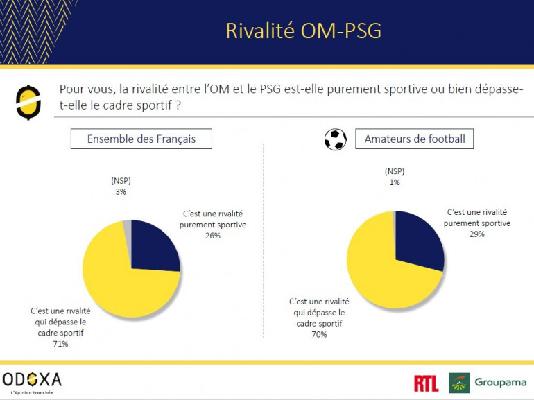 Pour une très large majorité de Française set de Français (71%), ce duel va bien au-delà du rectangle vert. Cadres (66%) ou ouvriers (72%), jeunes (67%) ou plus âgés (74%), amateurs de foot (71%) ou non, toutes les catégories de la population le pensent.