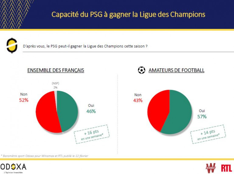 Cette victoire face au Barça bouleverse totalement les pronostics des Français et des amateurs de football sur le parcours européen du club cette année. La semaine passée, juste avant ce match, ils n’étaient que 30% et 43% à penser le club capable de remporter la Ligue des champions cette année.
