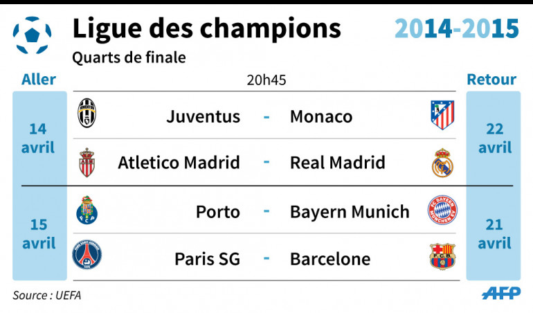 Ligue des champions 2014-2015 : le tableau des demi-finales