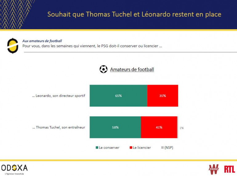 Leonardo bénéficie néanmoins d’un peu plus de crédit que Tuchel. 65% des amateurs de football affirment que le PSG doit conserver le Brésilien tandis qu’ils ne sont que 58% à donner ce conseil concernant l’Allemand. Les sondés estiment peut-être que les blessures à répétition sont des circonstances atténuantes pour l’entraîneur parisien.