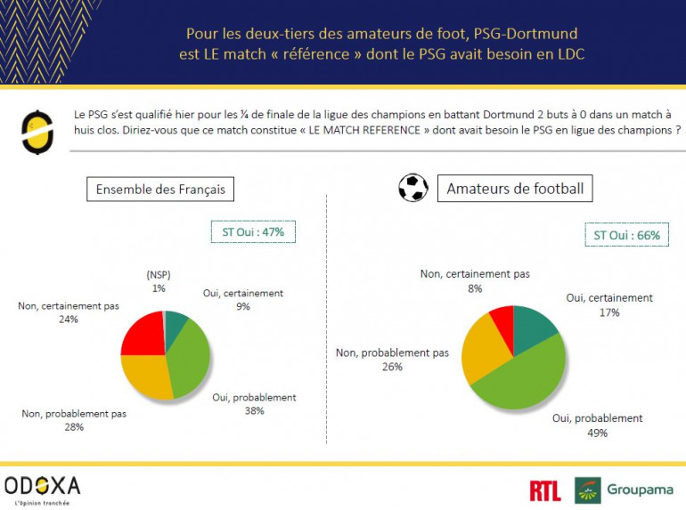 Pour les amateurs de foot, le Paris Saint-Germain tient enfin le match référence dont-il avait besoin en Ligue des champions après trois échecs consécutifs en 8es de finale : 66% le pensent dont 17% qui en sont même absolument certains après ce match disputé à huis clos.