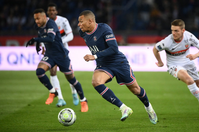 Kylian Mbappé avec le PSG au Parc des Princes le 3 avril 2022
