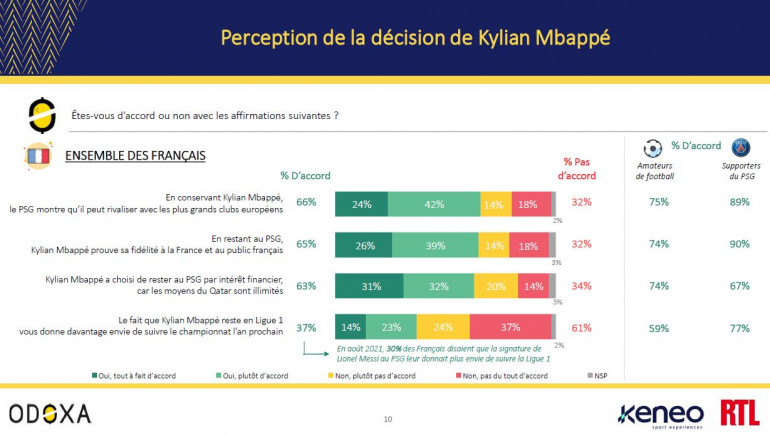 Savoir que l'attaquant de 23 ans reste dope l’intérêt pour la Ligue 1 : 37% des Français ont plus envie de suivre le championnat l’an prochain. Par ailleurs, 50% des sondés jugent que le PSG a tort de lui donner trop de pouvoirs quand 55% des amateurs de football estiment que le club a raison de valoriser son joueur le plus important.