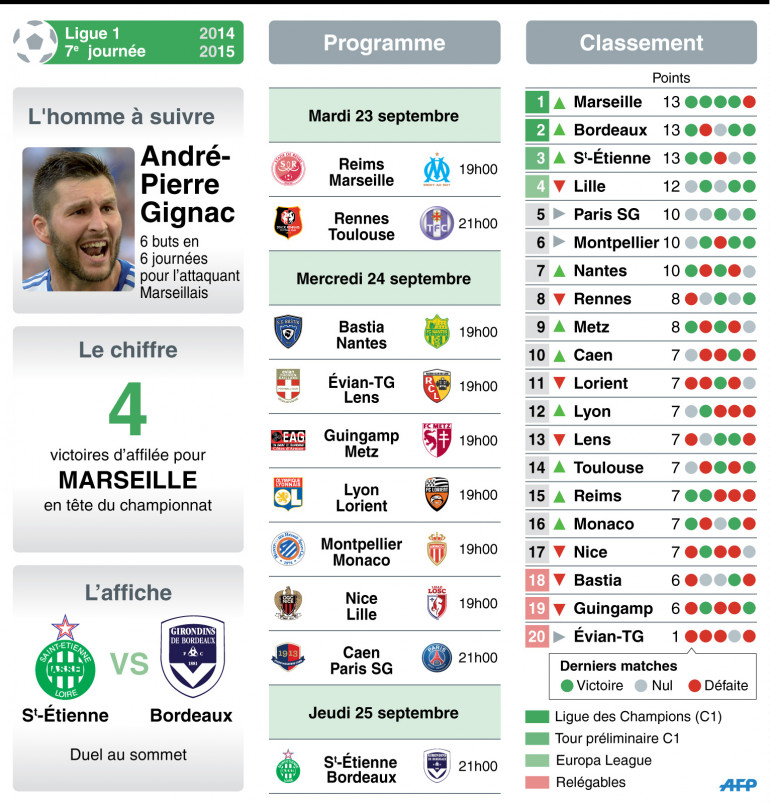 Moins de 48 heures après le coup de sifflet final de PSG-Lyon (1-1), match de clôture de la 6e journée, la Ligue 1 revient déjà mardi 23 septembre avec les deux premières rencontres du 7e épisode de cette saison 2014-2015.