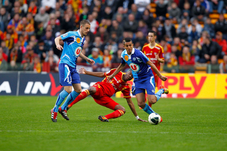 Riyad Mahrez à la lutte avec Geoffrey Kondogbia le 30 avril 2012