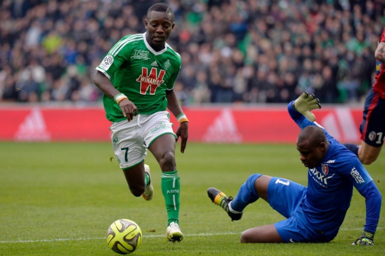 L'attaquant de Saint-Étienne Max-Alain Gradel devant le gardien de Lille Vincent Enyeama, le 22 mars 2015