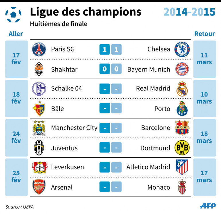 Ligues des champions : résultats et programme des 8es de finale