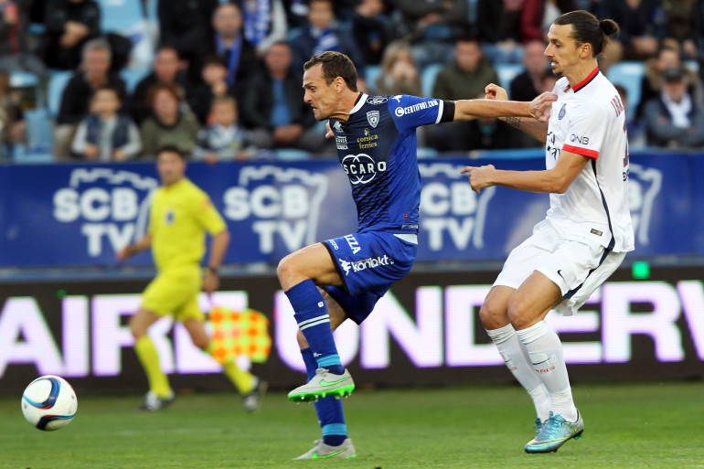 Sébastien Squillaci au duel avec Zlatan Ibrahimovic pendant Bastia-PSG