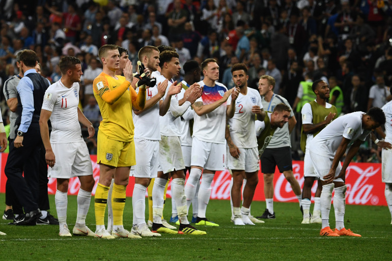 L'équipe d'Angleterre saluant ses supporters le 11 juillet à Moscou