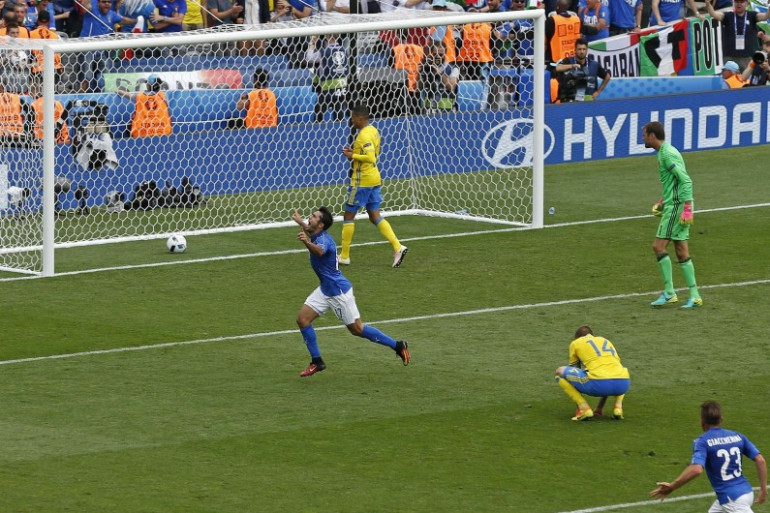 Sur une touche anodine rapidement jouée par Giorgio Chiellini, Zaza remise sur Eder. L'attaquant de l'Inter Milan se présente seul face à Andreas Isaksson. L'Italien ne se fait pas prier et trompe le portier suédois malgré les retours d'Oscar Lewicki, Kim Källström et Andreas Granqvist. Un but qui vient crucifier les coéquipiers de Zlatan Ibrahimovic qui tenaient ce match nul. L'ancien attaquant du Paris Saint-Germain pourtant très disponible ne se sera pas procuré beaucoup d'occasions si ce n'est ce raté seul face au but vide mais en position de hors-jeu (72e).