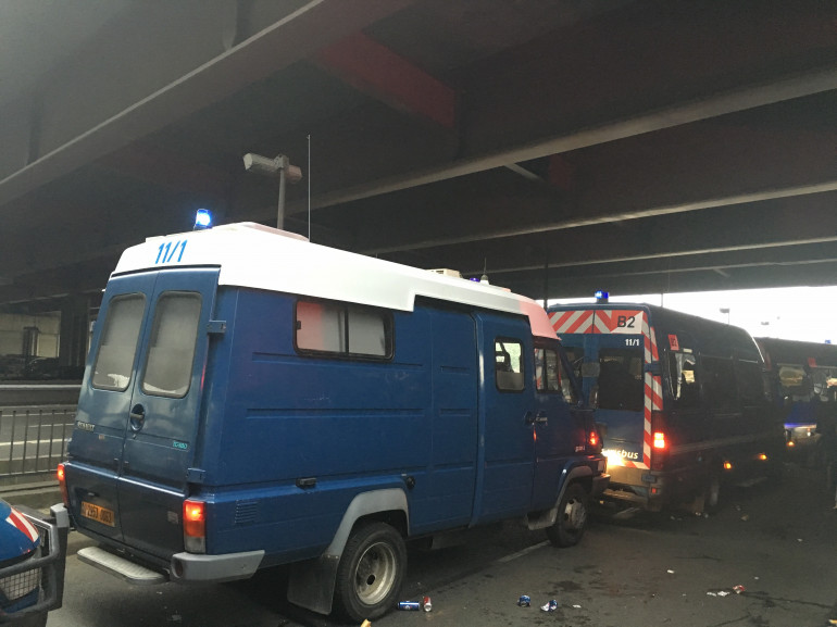Après donc une demi-heure de marche et d'attente, voici qu'arrive le calvaire de milliers de personnes samedi soir. Afin d'accéder à la porte U du Stade de France, l'une des 4 entrées ouvertes sur 26 dans le cadre des mesures de sécurité, il faut passer sous le pont en longeant le périphérique. Sur la gauche, côté route, une demi-douzaine de fourgon de gendarmes stationnent et les forces de l'ordre sont sur les dents, casque vissé sur la tête et bouclier à la main. Il faut dire que des centaines de supporters marseillais sont alors amassés dans un espace restreint. Si les chants des fans mettent une ambiance folle, les fumigènes et surtout une pluie de bombes agricoles rendent les gendarmes mais aussi les autres supporters très nerveux.