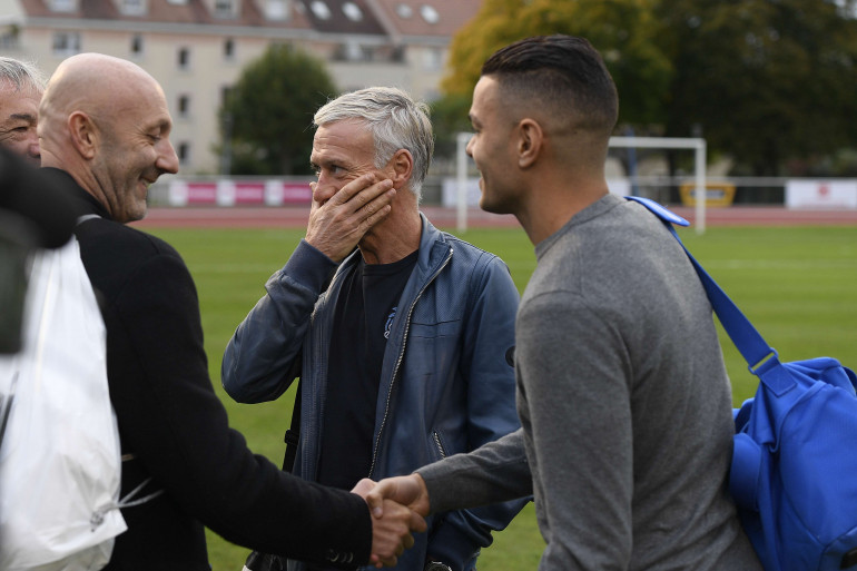 Fabien Barthez, Didier Deschamps et Hatem Ben Arfa le 11 octobre 2017