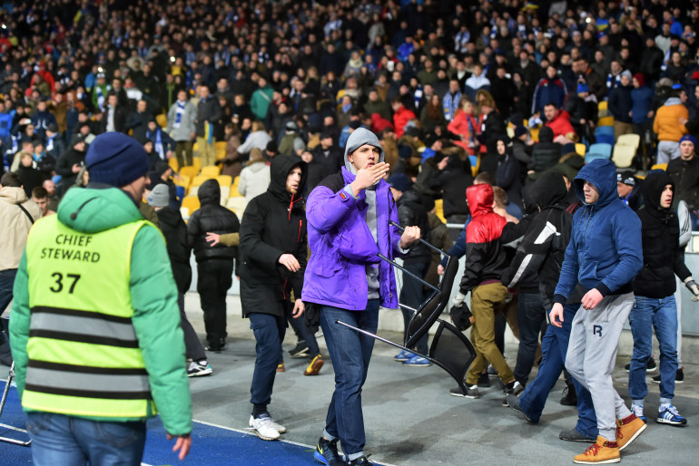 Un ultra ukrainien s'est emparé d'une chaise