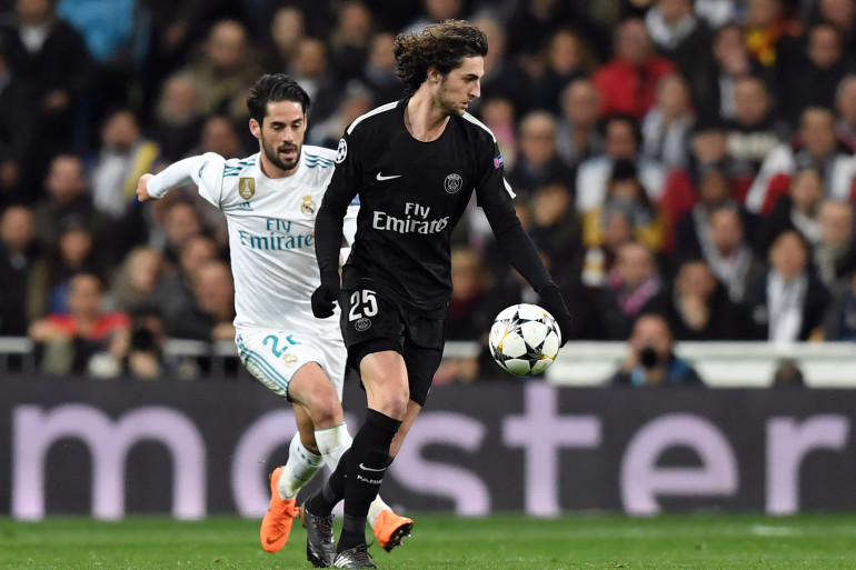 Adrien Rabiot à la lutte avec Isco mercredi 14 février 2018 à Madrid