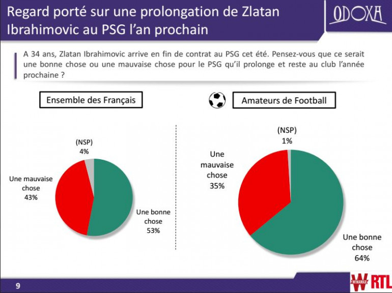 Zlatan Ibrahimovic doit rester au Paris Saint Germain la saison prochaine. Ce serait en tout cas une bonne chose pour 53% des Français et 64% des amateurs de foot. En fin de contrat en juin prochain, "Ibra" réalise une excellente saison à 34 ans, à tel point qu'il a complètement retourné l'opinion en sa faveur. Il y a un an, après ses propos sur "la France, pays de merde", 79% des français avaient une mauvaise image de lui.