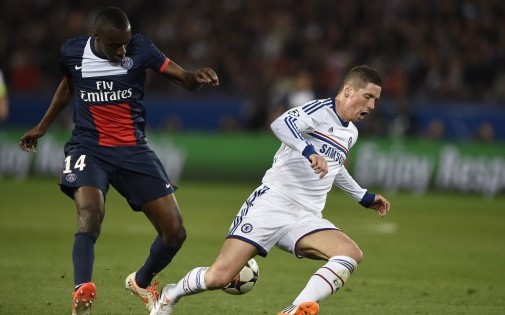 Blaise Matuidi face à Fernando Torres lors du quart de finale aller de Ligue des champions face à Chelsea, le 2 avril 2014