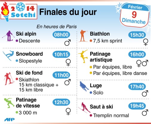 Les finales au programme des Jeux Olympiques de Sotchi, dimanche 9 février