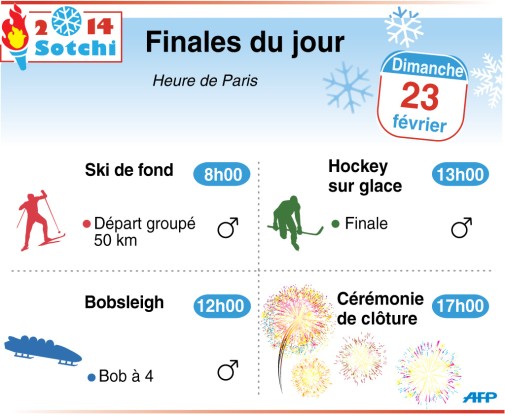 Les finales au programme des Jo de Sotchi dimanche 23 février