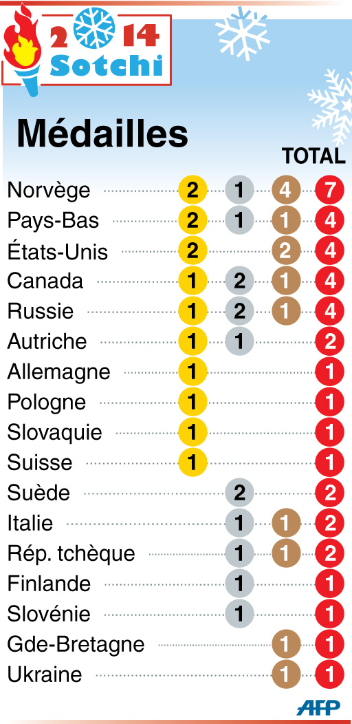 17h38 : Le tableau des médailles, mais la France n'est pas encore intégrée