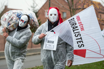 Avant la manifestation contre le paquet de cigarettes neutre ce mercredi midi devant le Sénat, les buralistes ont commencé leurs actions ce mercredi matin en déversant quatre tonnes de carottes devant le siège du PS.