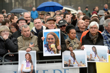 REPORTAGE - Les proches de la nageuse médaillée olympique étaient réunis à Nice pour lui rendre un dernier hommage après sa disparition dans un accident d'hélicoptères dans le cadre du tournage de "Dropped", en Argentine.