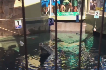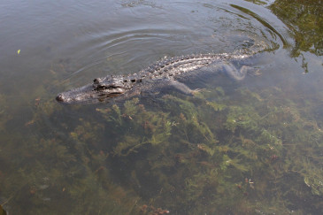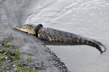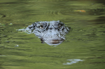 Le crocodile barbotait dans une mare au fond d'un jardin privé au Texas. Cette femelle alligator a été élevée par une ancienne bénévole du zoo de New Braunfels. Elle y avait volé il y a 20 ans un œuf d'alligator.