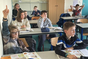 C'est dans sa classe de CM1, à Bettancourt-La-Ferrée (Haute-Marne), que Nathalie a accepté de me recevoir. Le temps d'une journée, j'ai été le 28ème élève de sa classe : tâches d'encre sur les doigts, équerre cassée et ciseaux à bouts ronds, la...
